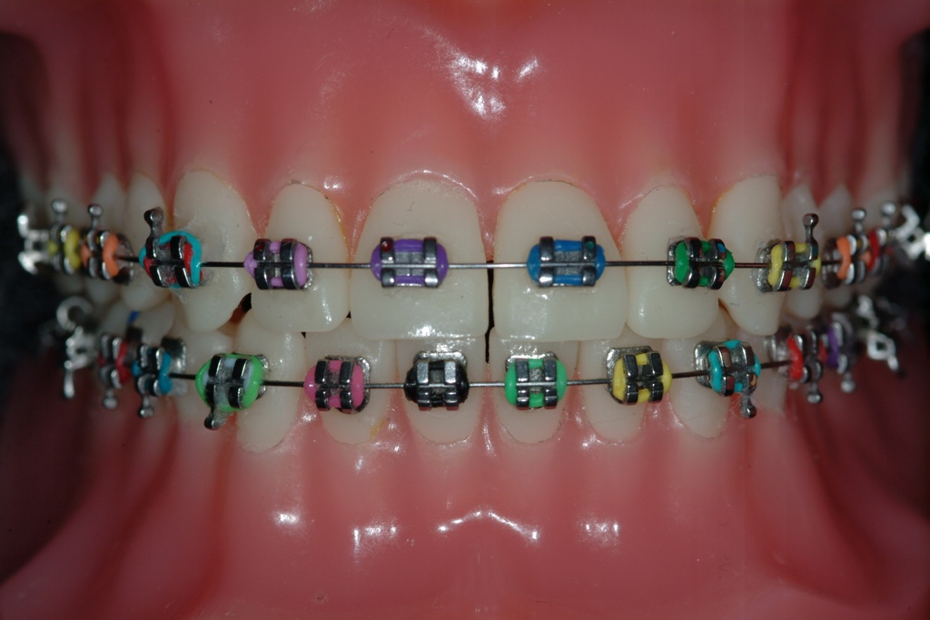Metal braces are made from high grade stainless steel. The wire is attached to the braces with elastomeric ties, which come in a range of colours.